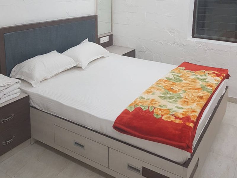 The apartment is fully air-conditioned and the guests can enjoy high-speed internet access. There is satellite television for the guests’ entertainment in every room as well. The kitchen has all the equipment including utensils, gas stove, microwave, R.O. water machine and refrigerator. The washroom has a geyser installed and the accommodation comes with 24-hours water supply. There is full size cupboard and the rooms have queen-size beds. The apartment can comfortably house a maximum of 4 guests at a time.